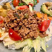 ピリッと辛いサルサソースと食べる、タコライスです。 ひき肉のタコミートと、パセリやレモン汁の香りで爽やかさがプラスされたサルサソースの組み合わせに、レタスの食感がプラスされどんどん食べたくなる一品です。