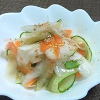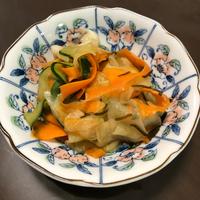 - 1 にんじん、きゅうり、大根はピーラーでスライスします。