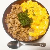 余ったネギトロで!キムチものせて三色丼〜🙌そぼろ、卵ともに味付けもいい感じでした◎