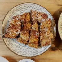 お皿に盛る時は皮目を上にするとサクッと美味しく食べられます。どっぷり浸かる揚げ油まで使わなくても多めの焼き油程度で大丈夫でした。衣サクッと中はふんわり美味しくいただきました。