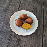 - 4 鍋に揚げ油を入れて170℃に熱したら、3をスプーンですり合わせながら入れ、中に火が通るまで10分程揚げて取り出します。