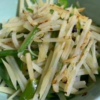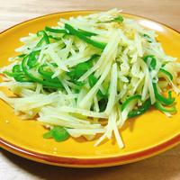 じゃがいもは細切りにしたら、水にさらして表面のでんぷんを落としておくと、シャキシャキとした仕上がりになります。