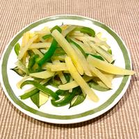 - 1 じゃがいもは細切りにし、水に10分ほどさらして水気を切ります。ピーマンは細切りにします。