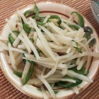 じゃがいもとピーマンを花椒で香り付けした油で炒めて中華風に仕上げました。しゃきしゃきに仕上げたいので、じゃがいもは水にさらして、炒めすぎないようにして下さい。ピーマンはアスパラガスに代えてもおいしいですよ。ぜひお試しください。