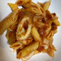 ・ペンネは表示時間の1分早く水から上げてください。 ・辛めが苦手な方は輪切り唐辛子を入れなくても美味しくお召し上がりいただけます。 ・タマネギを炒める時はしなっとするまで炒めてください。 ・カットトマト缶が用意できない場合は、ホールトマト缶も代用いただけます。普通のトマトを使用する場合は小さく切ってじっくり煮込んでから味付けをしてください。
