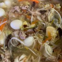 キャベツ、人参に椎茸、しめじ、えのき、チンゲン菜、カニカマを足してボリュームアップにしました。美味しかったので、また作ります。