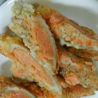 明太子増やしてチーズもいれ、衣にあおさ使いました。