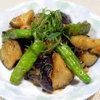 - 1 ナスは一口大の乱切りにし、ししとうはヘタを切り落とします。