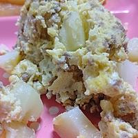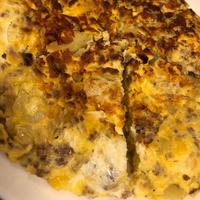 二回目のリピ。今回は卵3個、豚挽き肉98g、じゃがいも小1、たまねぎ1/4ににんじんの先っぽの残りを追加してつくりました!やっぱり挽き肉からでる旨味でおいしい!バターとチーズと卵、おいしいコラボです!