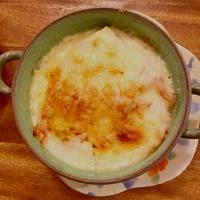 あげもなくひき肉も無く、長ネギを玉ねぎに変え肉の代わりにじゃがいもを入れたレシピガン無視のグラタンでしたが、味がとても美味しかったです。