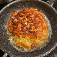千切りして離水してフライパンに敷き詰めて焼くだけ。