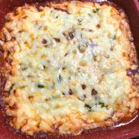 ミートソースは倍量、ホワイトソースは缶使用。餃子の皮も多めにしました!30分オーブンで焼いたけどじゃがいもが硬かったのでプラス10分焼きで計40分焼きました。