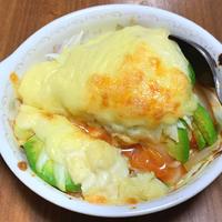- 3 耐熱容器に1のじゃがいも、ミートソース、餃子の皮、1のアボカド、1の玉ねぎ、2の順に重ねます。同じようにもう1度くり返し、チーズをかけます。