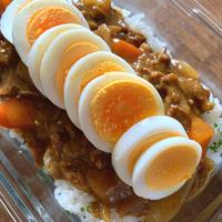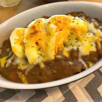 野菜がゴロゴロと入ったカレーをごはんにかけて、オーブントースターでこんがりと焼き上げました。香ばしいチーズとピリ辛のカレーがよく合います。ゆで卵がカレーの辛さを少し和らげてくれますよ。ぜひ作ってみてくださいね。