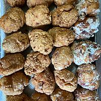 - 3 2をボウルに入れた片栗粉にスプーンですくって入れ、全体にまぶしたら手で丸めます。