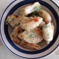 衣液の硬さは、お好みで調整してください。 笹かまぼこは、かまぼこなどでも代用できます。 青のりの量もお好みで調整してください。