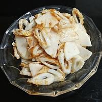 - 3 ちくわは5mm幅の斜め切りにします。