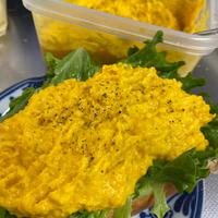 なめらか食感のかぼちゃサラダはいかがでしょうか。生クリームを加えてなめらかに仕上げました。そのままはもちろん、食パンなどに塗って食べると朝ごはんや軽食にもぴったりの一品になりますよ。ぜひお試しくださいね。