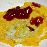 - 4 1をのせて包み、形を整えます。器に盛り付け、ケチャップをかけて完成です。