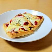 - 3 1をのせてケチャップをかけ、ピザ用チーズをかけます。