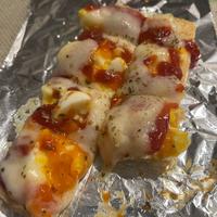 - 4 アルミホイルを敷いた天板にのせ、オーブントースターで3分焼きます。