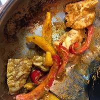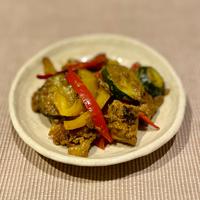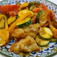 鶏もも肉とパプリカをマヨネーズとカレー粉で合わせて炒めました。赤黄パプリカにズッキーニにが入って彩りも綺麗です。スパイシーなカレー粉にマヨネーズが入ることによってまろやかに仕上がります。是非お試しくださいね。