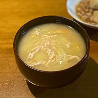 ほんだしと鶏ひき肉、厚揚げから深い旨みが溶け出す贅沢な味わいのお味噌汁です。キャベツの自然な甘みと相まって、ほっこりと心が温まります。具だくさんで食べ応え抜群なので、これ一品でお腹も大満足。七味唐辛子をアクセントにしたり、しめじや人参などの野菜をプラスしてアレンジも楽しめます。短時間で簡単に作れるのも魅力で、朝食やちょっとした夜食にもぴったりです。