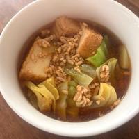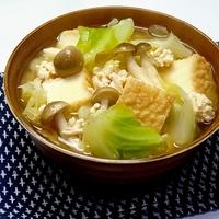厚揚げで簡単満足! キャベツと鶏ひき肉のみそ汁 レシピ・作り方