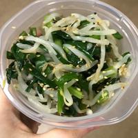 もやしとニラは茹でたあと、しっかり絞ってから味をつけました。皆さんのレビューを参考に鶏がらスープの素と醤油を少しプラス。箸休めの一品にちょうどいいと思います。