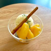 そのまま食べてもおいしいりんごですが、今回はメープルシロップとシナモンスティックを加えて煮込むコンポートにいたしました。メープルシロップとシナモンスティックの風味がとてもよく、やわらかくなったりんごにとてもよく合いますよ。
