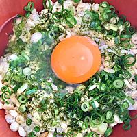 - 4 小ねぎを散らして、めんつゆをかけて完成です。