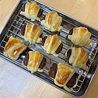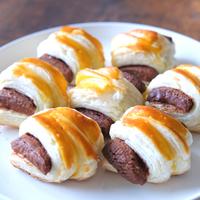冷凍パイシートで簡単に作れる、ミニチョコクロワッサンはいかがでしょうか。サクサクのパイに、甘いチョコレートが相性抜群の一品です。温かいうちに食べると、チョコレートのとろける食感が楽しめますよ。少ない材料で簡単に作れるので、ぜひお試しくださいね。
