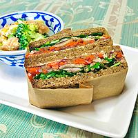 パクチー以外の材料があったので、レタスでトライ。紅芯大根も人参と同じ調味料につけて挟みました。カロリーオーバーになるのでパンは6枚切りをさらに半分にスライス。専門店で食べた時にはアクセントに辛みがあり、常備している何を使えば良いか模索中。多分、チリソース系?