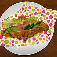 - 6 クロワッサンに切れ目を入れ、4と5を挟んだら完成です。