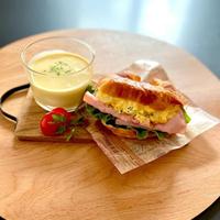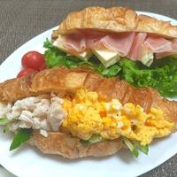 鶏ささみとスクランブルエッグのサラダを挟んだクロワッサンサンドです。サラダはマヨネーズ、粒マスタードとレモン汁でさっぱりとした味付けに仕上げました。朝食や軽いランチにもぴったりです。ぜひ作ってみてくださいね。