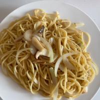 エリンギと玉ねぎをフライパンで炒めて作りました。パスタの量が多くて少し薄味だったけど美味しくて簡単に出来ました。