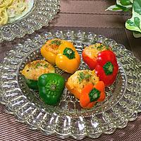 カラフルパプリカをくり抜いて作ってみました。肉詰めより楽チンだし、コロンと可愛いミニサイズのパプリカ達がオシャレ。焼いたパプリカの甘みとシャキシャキがチーズとの相性抜群で美味しかった。