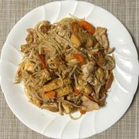 - 7 にんじんがしんなりしたら、もやし、4を入れ味を調え皿に盛り付けて出来上がりです。