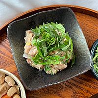 アジのお刺身を使って簡単に作れる、梅風味のなめろうはいかがでしょうか。アジのお刺身を使うことで、下ごしらえの手間が要らず、お手軽に作れますよ。梅干しの酸味と塩気がアクセントになり、ごはんのお供にもお酒のおつまみにもよく合う一品です。ぜひお試しくださいね。