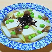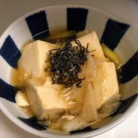 シンプルなあんかけ豆腐に塩昆布を合わせてみました。塩昆布を上に乗せて食べるごとで旨みが増し、塩辛さの味わいがくせになります。簡単にさっと出来て、お酒のおつまみとしてもおすすめですよ。