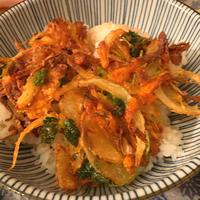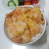 とうもろこしの甘味とエビのプリプリとした食感が美味しいかき揚げを作りました。お好みで塩をかけて食べてください。おかずにもおつまみにもオススメの一品です。三つ葉を刻んで生地に加えると、彩りも良くなります。