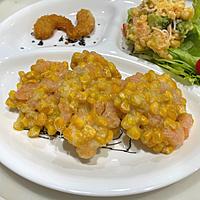 コーンだからバラバラになっちゃうかなと心配だったけど、最初に薄力粉まぶしたらまとまってくれたのでよかった✨