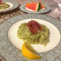 アボカドと生ハムのリゾットのご紹介です。チーズのコクとアボカドの旨味がお米に染みこんだリゾットとなっております。生ハムの旨みと塩気がアクセントになり、おいしいですよ。ちょっと特別な日のおしゃれなディナーにぜひ作ってみてくださいね。