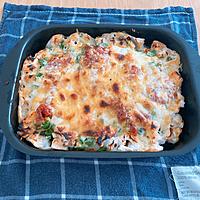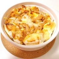 - 3 グラタン皿に1を入れ、2、ピザ用チーズを順にのせます。