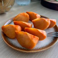 No.235 今日、柿が安く売っていたので買いました🤗すごい久しぶりに食べましたが、ジューシーで甘く、すごく美味しかったです😍そして、この切り方だとちょうどいい大きさで食べやすかったです😆なので、またこの切り方を参考にさせて頂きます✨