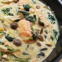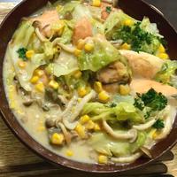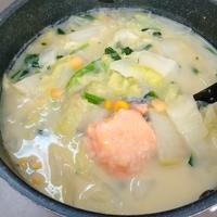 生鮭二切れ、白菜1/8、冷凍ほうれん草、コーンクリーム缶1缶(400g)で作りました。スープっぽくしたかったので、最初にバター20gで小麦粉まぶした鮭を焼き、白菜を投入。水400cc追加してしっかり白菜をしんなり加熱させてから、コーンクリーム缶→牛乳150。沸騰したら最後に冷凍ほうれん草を加えてできあがり!水分たっぷりで塩控えめなので、塩鮭でも大丈夫そう。減塩の私はそのまま、旦那は最後に塩コショウしていただきます♡からだがあったまって美味しい!にんじんや玉ねぎ、キノコも次回は入れようと思います。2022/12/20