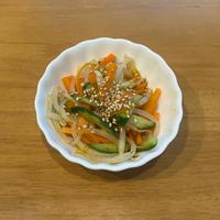 ラー油入りのピリ辛な和え物です。もやしときゅうりのシャキシャキ感を楽しむことのできる一品です。にんじんを加えることで、色鮮やかになります。普段の食事はもちろん、お酒のお供にもぴったりです。ぜひ一度お試しください。