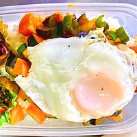 - 5 ごはんをよそったお皿に4を盛り、3を添えて、バジルを乗せ完成です。