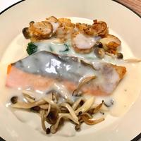 時間はかけたくないけど簡単にお洒落な料理が食べたい、、という時にぴったりな一品です。寒い季節となり、いつものサーモンのムニエルにクリームソースをかけるだけで見た目も暖かくたくさんの野菜も一緒に食べれるレシピです。