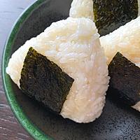 - 2 ラップに半量のごはん、1をのせ三角形に握ります。同様にもう一つ作ります。